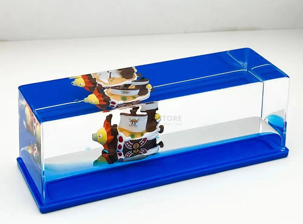 This beautifully crafted collectible features a miniature ship encased in a glass bottle, symbolizing the iconic voyages of the Straw Hat Pirates.